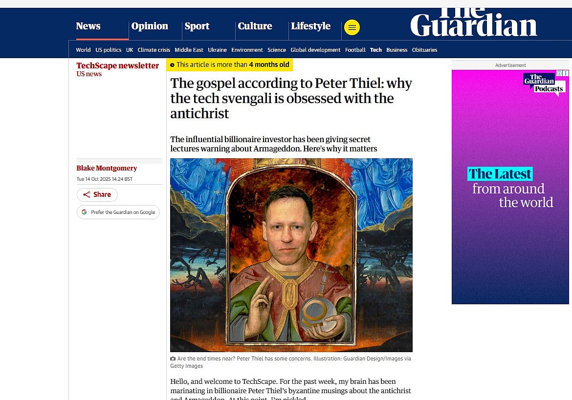 ভ্যাটিকানের একেবারে কাছাকাছি, এক রুদ্ধদ্বার সভাকক্ষে শুরু হয়েছে অ্যান্টিক্রাইস্ট বা দাজ্জালের আগমন নিয়ে ধারাবাহিক বক্তৃতা। বক্তা সিলিকন ভ্যালির বহুচর্চিত প্রযুক্তি ধনকুবের পিটার থিয়েল।