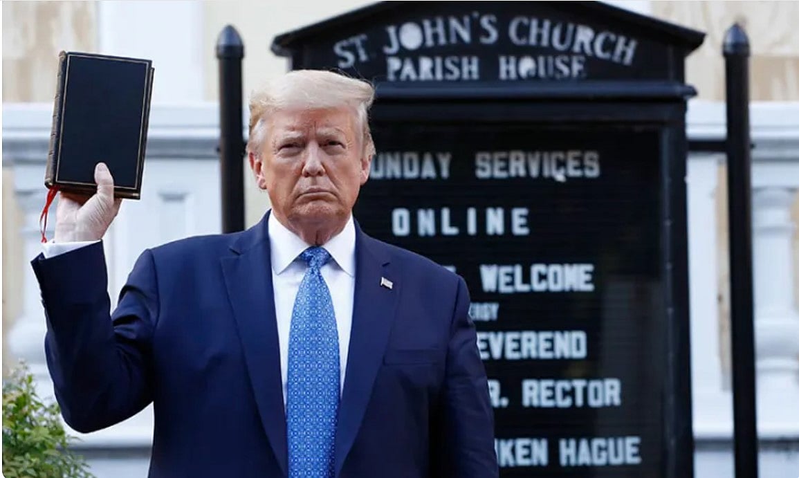 ট্রাম্প বরাবরই রাজনৈতিক উদ্দেশ্যে ধর্মীয় আবেগ ব্যবহার করার ব্যাপারে খুব কামেল লোক। তিনি জানেন, এতে ধর্মীয় ভোটারদের মধ্যে ‘ঈশ্বরনির্দেশিত নেতৃত্বের’ ধারণা পোক্ত হয়।