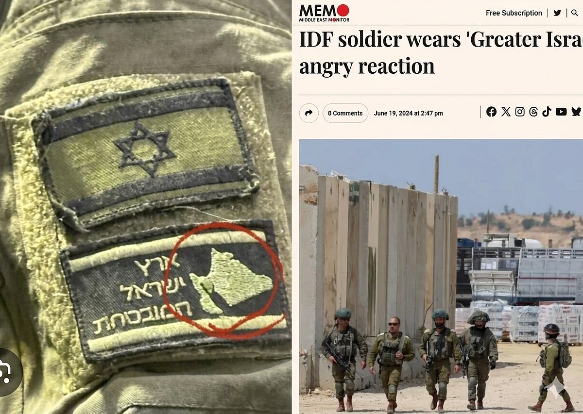 মিডল ইস্ট মনিটর-এর এক প্রতিবেদনে দেখা যাচ্ছে, ওই সময় আইডিএফের সেনাদের পোশাকে লাগানো ব্যাজে ইসরায়েলের পতাকার ছবির নিচে স্পষ্ট করে তাদের স্বপ্নের ‘গ্রেটার ইসরায়েল’–এর ম্যাপ আঁকা ছিল।